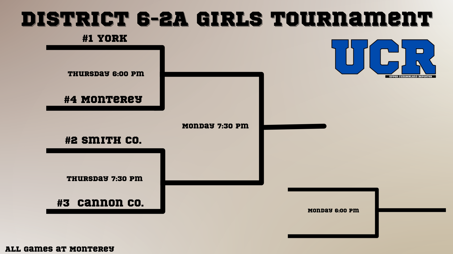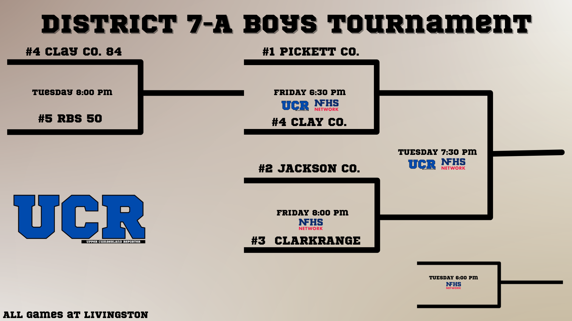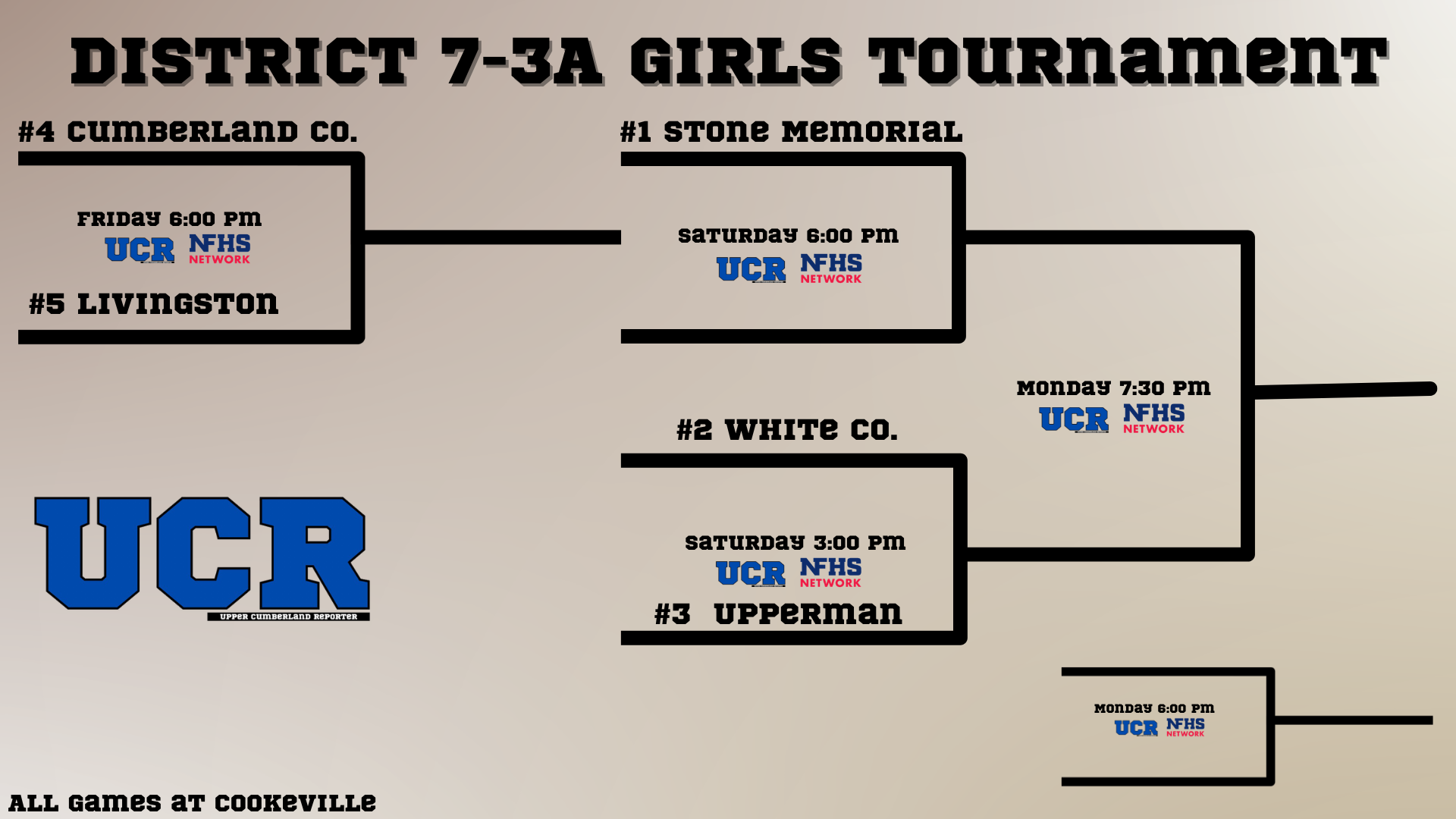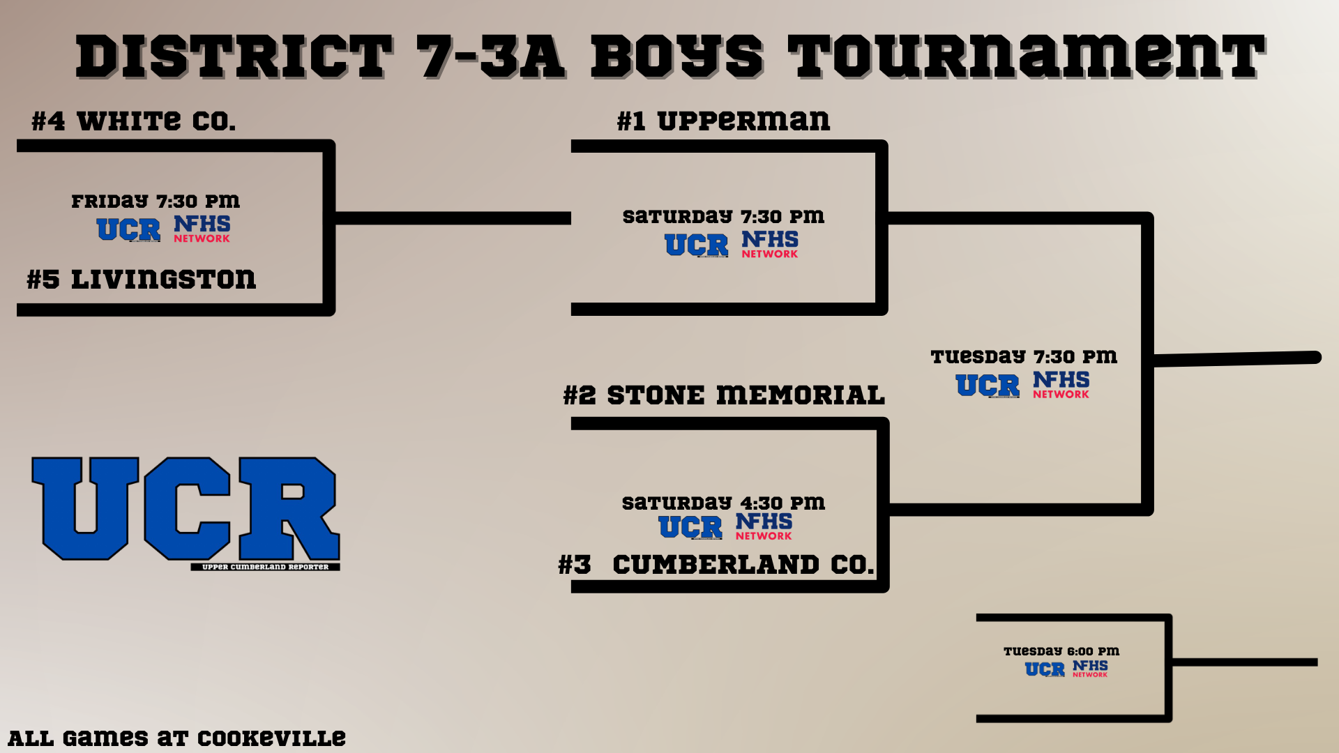 2026 Upper Cumberland District Tournament Brackets: 6-1A; 7-1A; 8-1A; 6-2A; 7-3A; 8-3A and 6-4A Posted By: uppercumberlandreporter February 19, 2026