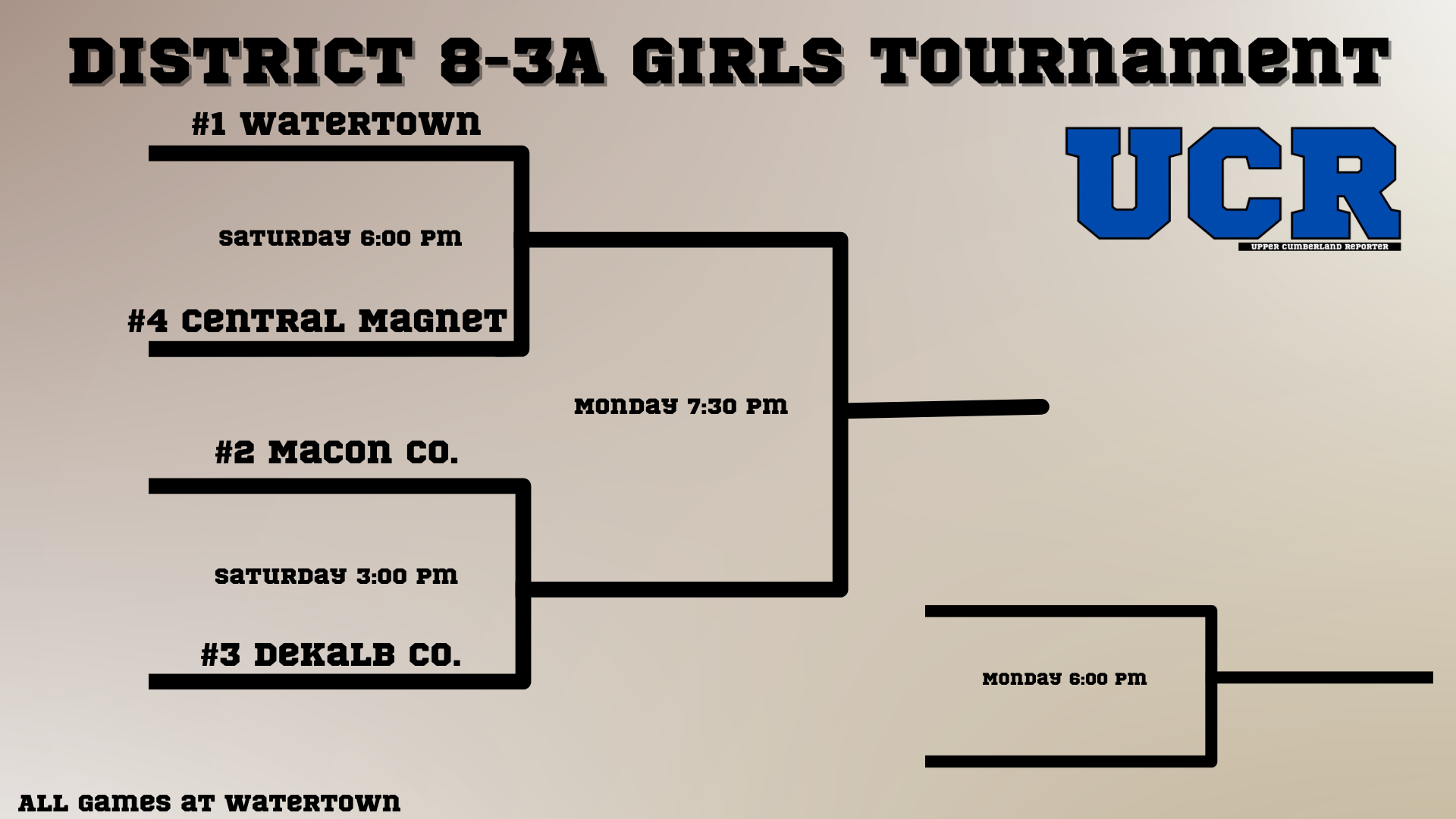 Be the first to comment on "2026 Upper Cumberland District Tournament Brackets: 6-1A; 7-1A; 8-1A; 6-2A; 7-3A; 8-3A and 6-4A"