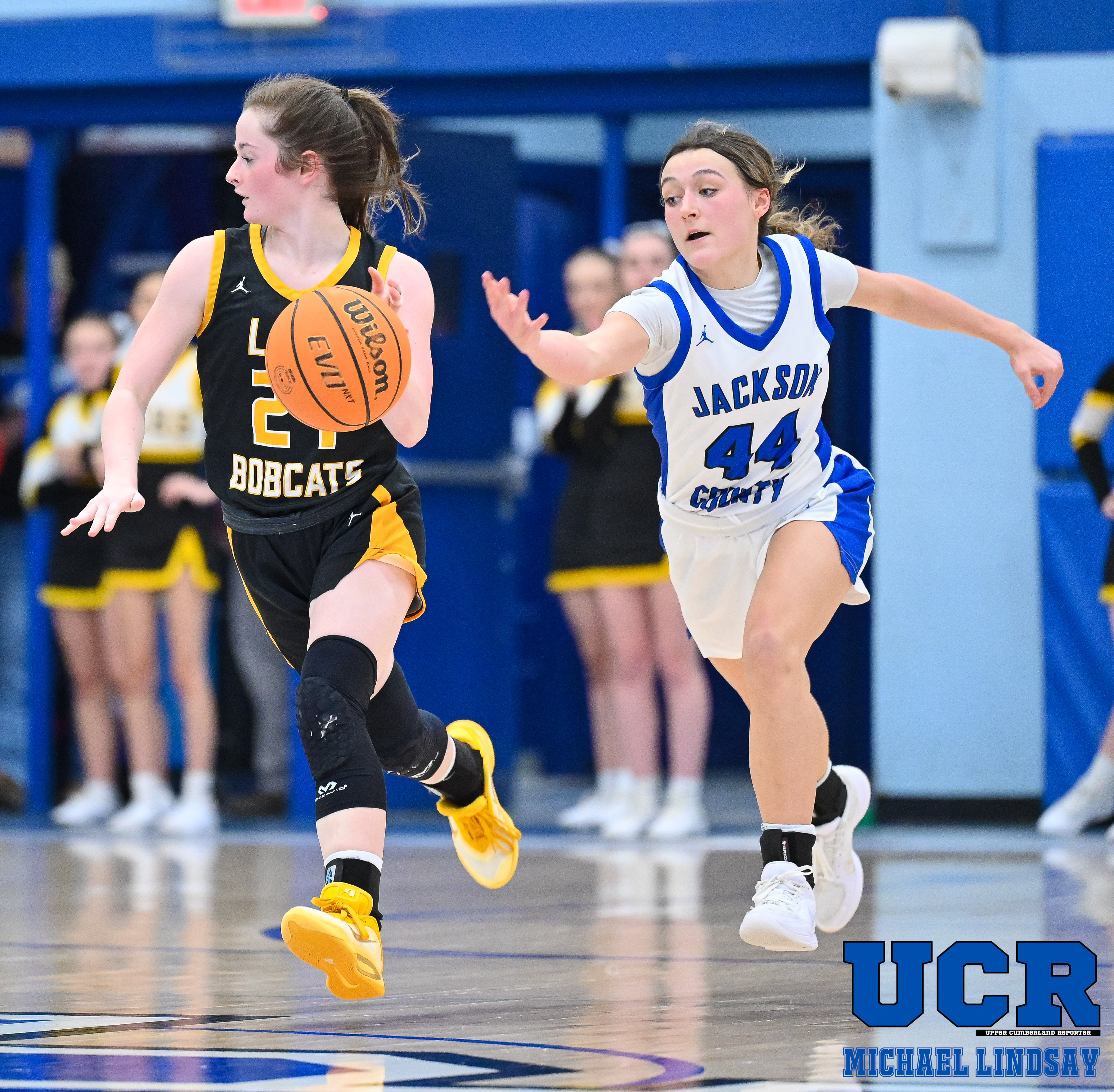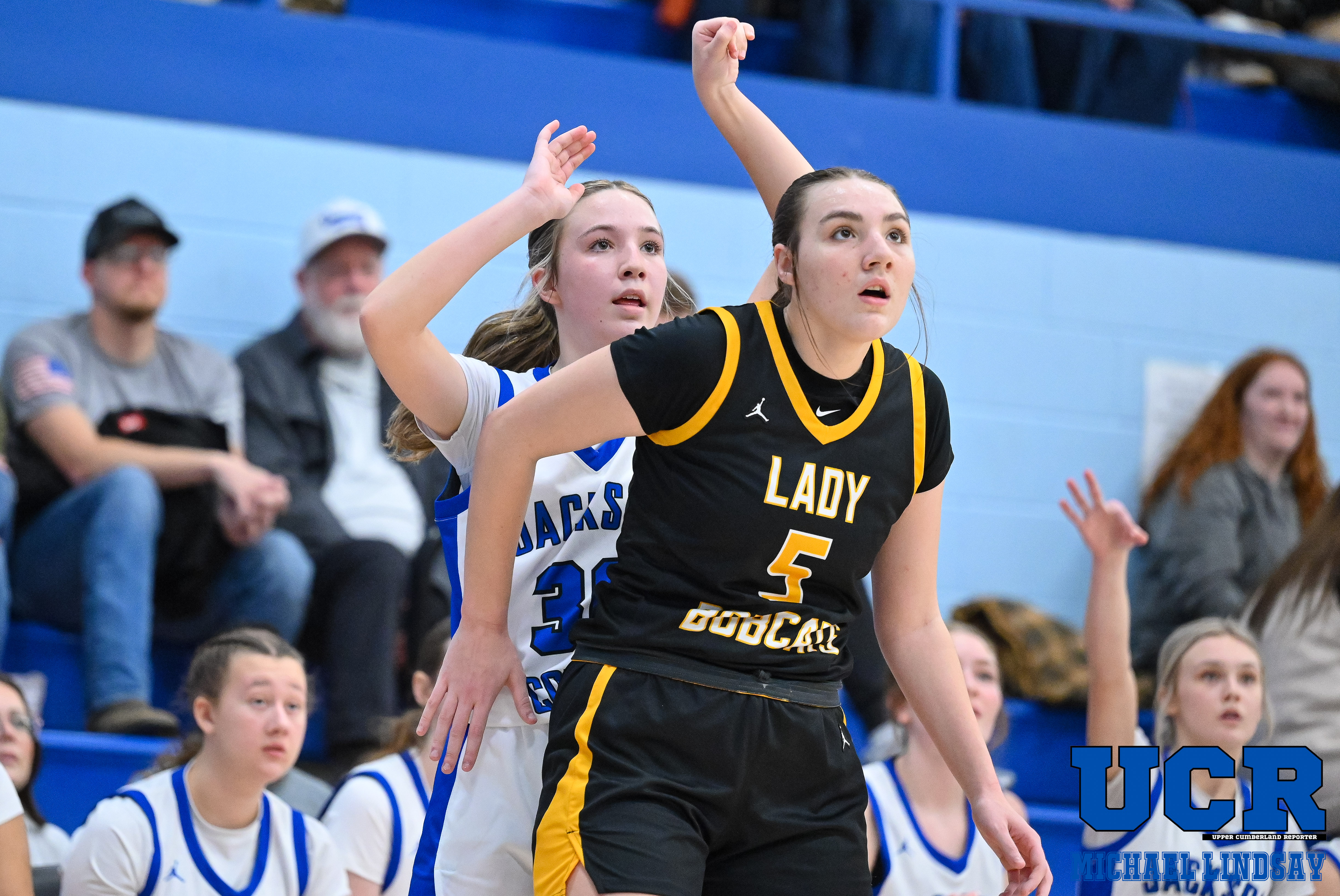 Pickett County jumped out to a 12-7 lead after the first quarter, but Jackson County battled back to take a 16-14 lead via a pair of Meadows free throws with 4:59 remaining in the second period. The Lady Bobcats closed the first half on an 8-0 run to regain a 22-16 halftime lead.